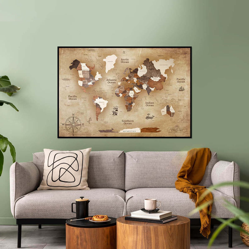 Bei einer sinnvollen Auswahl sorgt die Wanddekoration für eine angenehme Atmosphäre. Es hat etwas Einzigartiges und Außergewöhnlich Schönes, wenn man eine Weltkarte an eine fade und leere Wand hängt und sieht, wie die ganze Welt in einer attraktiven Dekoration zum Leben erwacht.