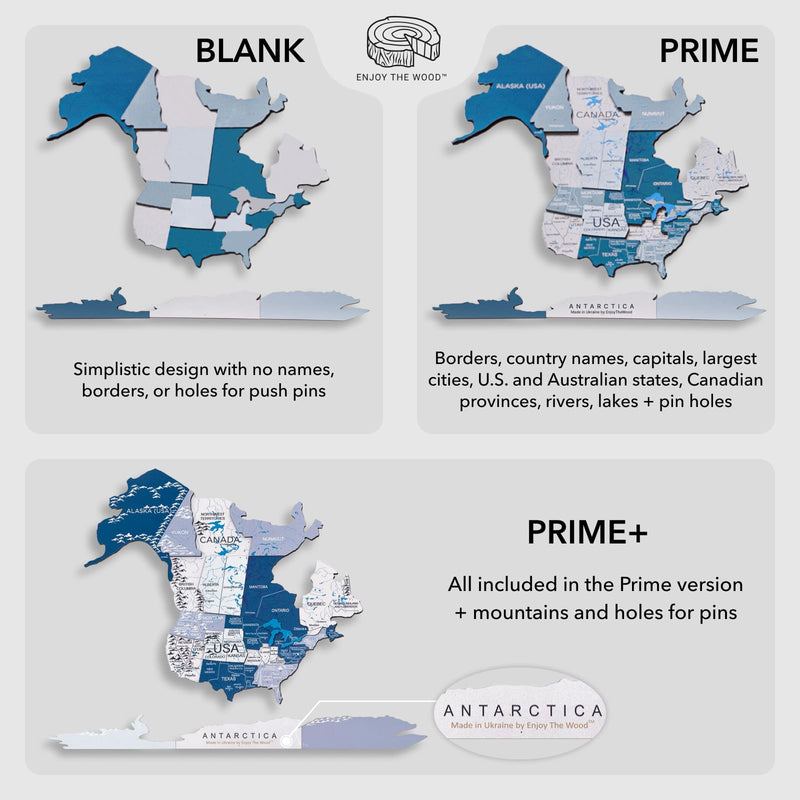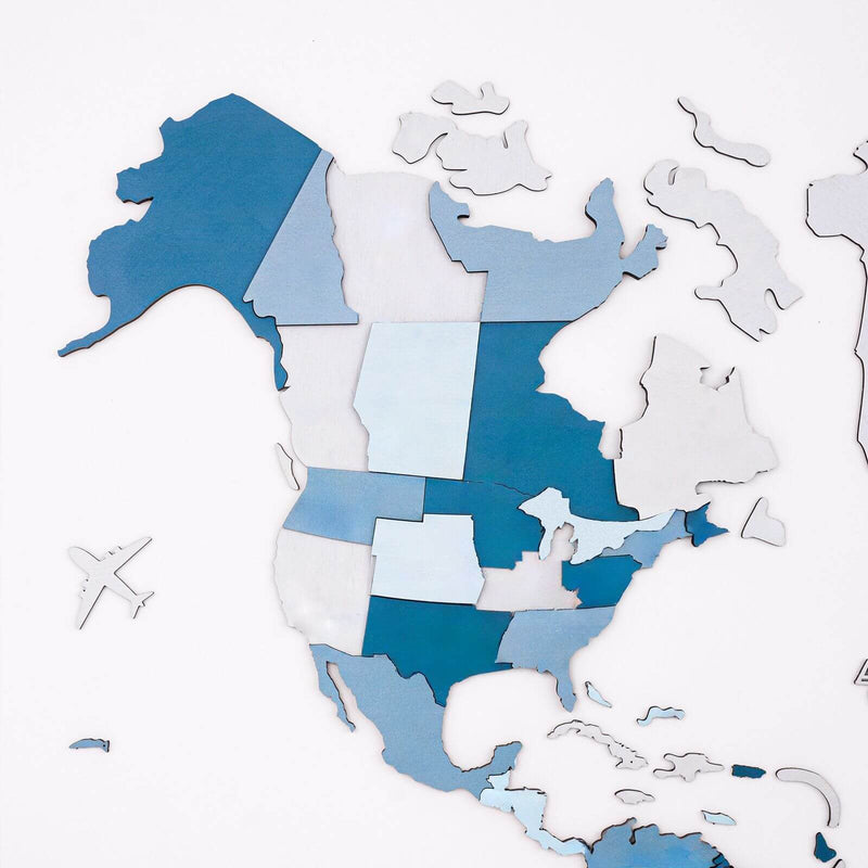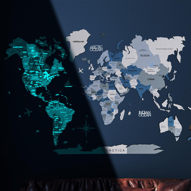 3D Luminous/Magnetic farbige Holzkarte der Welt Aqua.