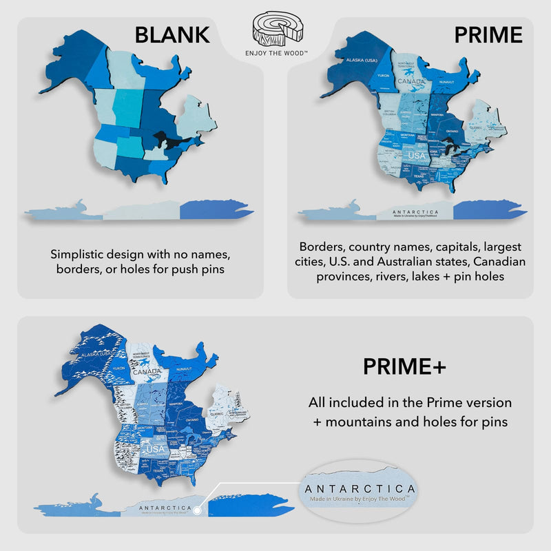 3D Luminous/Magnetic farbige Holzkarte der Welt Azure.