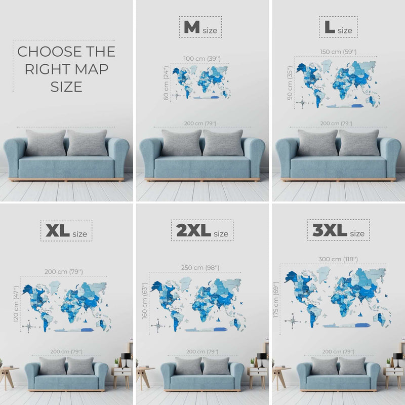 Die Karte ist kein geografisches Hilfsmittel, da einige kleine Inseln und Städte weggelassen wurden. Sie können jedoch gemeinsam mit Ihren Kindern Orte markieren, die Sie gerne besuchen würden oder bereits besucht haben. Oder entdecken Sie einfach, wie groß die Welt ist, und fördern Sie bei kleinen Kindern die Wanderlust und die Liebe zur Geografie.