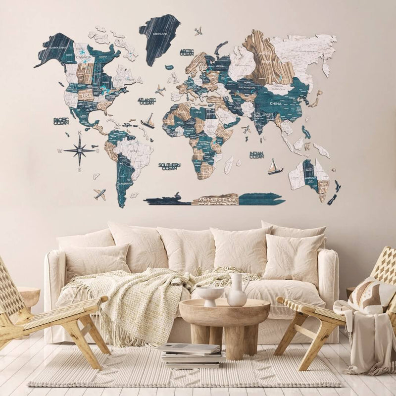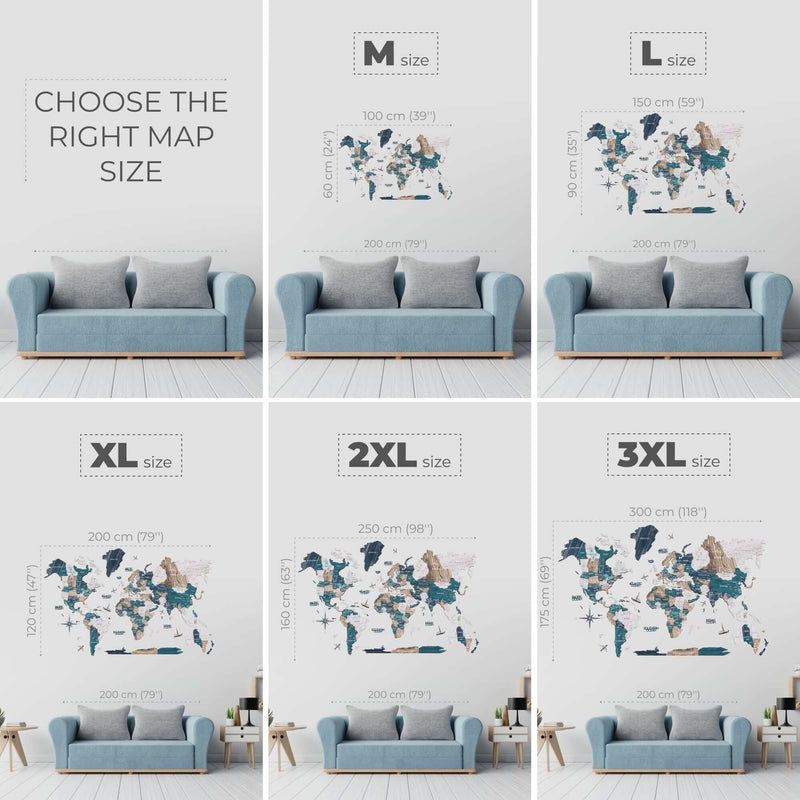 Die Karte ist kein geografisches Hilfsmittel, da einige kleine Inseln und Städte weggelassen wurden. Sie können jedoch gemeinsam mit Ihren Kindern Orte markieren, die Sie gerne besuchen würden oder bereits besucht haben. Oder entdecken Sie einfach, wie groß die Welt ist, und fördern Sie bei kleinen Kindern die Wanderlust und die Liebe zur Geografie.