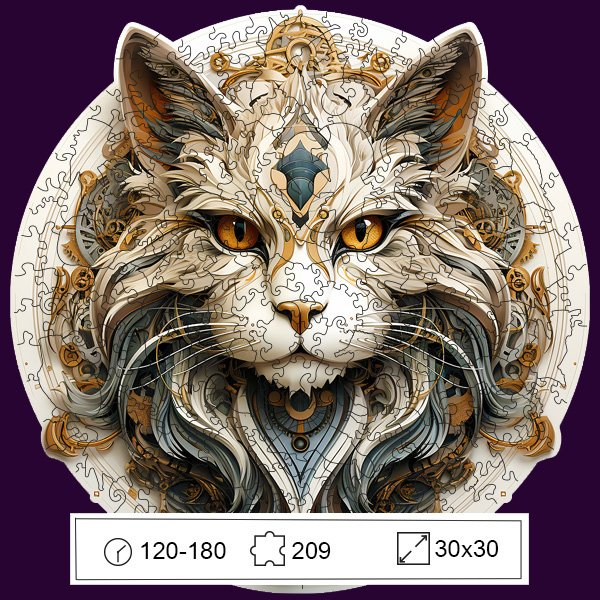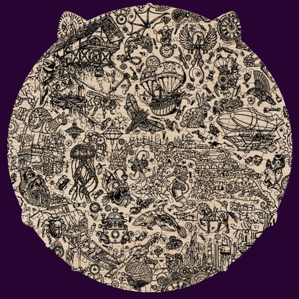 Tauchen Sie ein in eine fantastische Steampunk-Welt! Auf der Vorderseite zeigt das Puzzle ein lebendiges Katzenmotiv mit faszinierenden mechanischen Details. Die Rückseite entführt Sie in ein utopisches Universum voller fliegender Luftschiffe, mechanischer Tiere, Drachen, wandelnder Häuser und magischer Apparate.